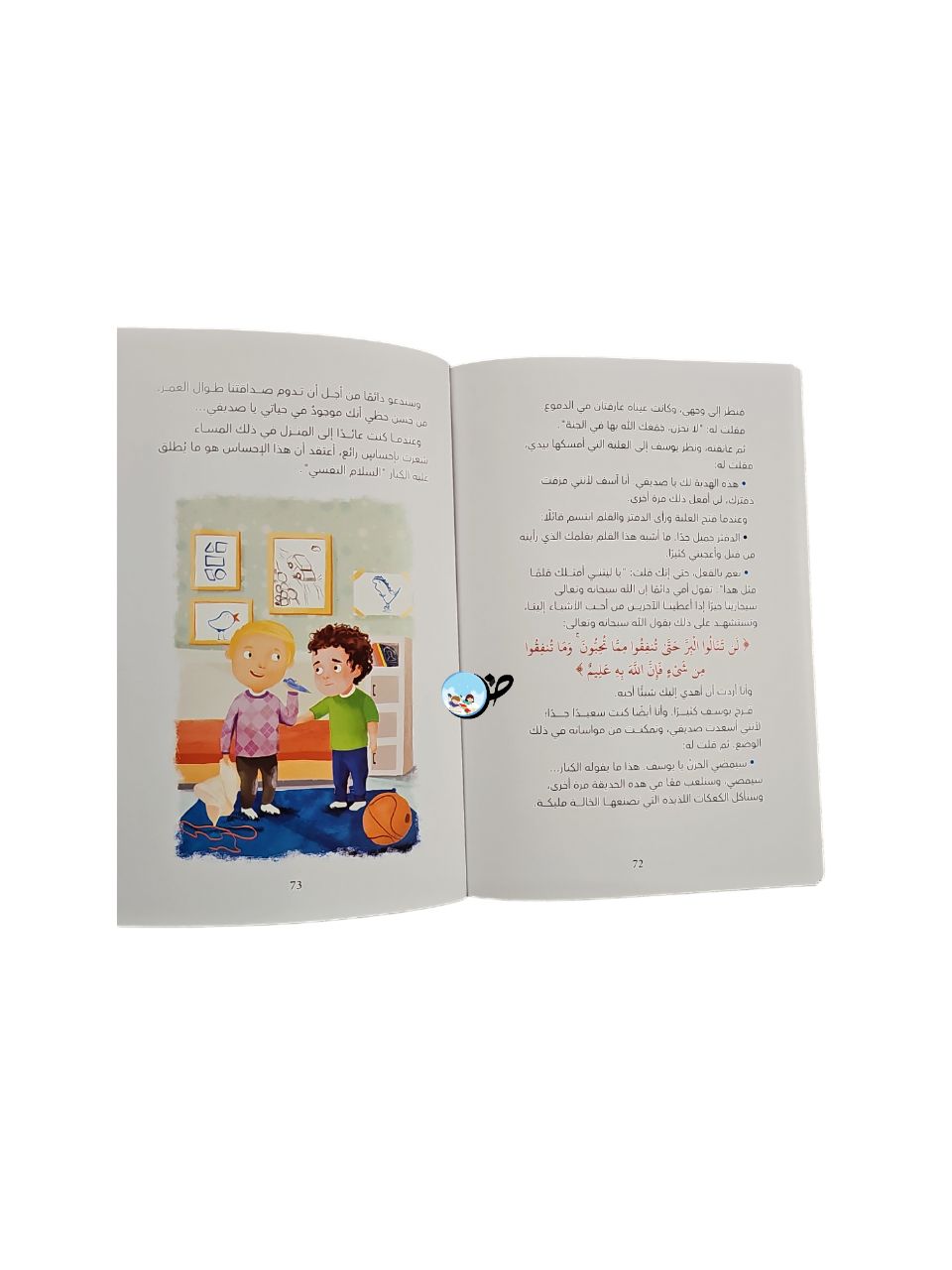 السلام عليكم يا أصدقاء. أنا صالح، أحب تعلم القرآن الكريم، والسنة النبوية. وسأحكي لكم كيف أطبق ما أتعلمه من آيات القرآن الكريم وأحاديث النبي صلى الله عليه وسلم في المواقف اليومية التي أمر بها ... أحرص في كل معاملاتي على العمل بما تعلمته من القرآن والسنة. وكلما أتيحت لي الفرصة أعلم أصدقائي ما تعلمته من الآيات القرآنية والأحاديث النبوية، وأشجعهم على العمل بها حتى تصبح حياتنا جميعًا أفضل. وأنا واثق من أنكم أيضا ستتعلمون كيف تطبقون الآيات القرآنية والأحاديث النبوية في حياتكم اليومية من خلال قراءتكم للمواقف المختلفة التي سأحكيها لكم، والآن أتمنى لكم جميعا