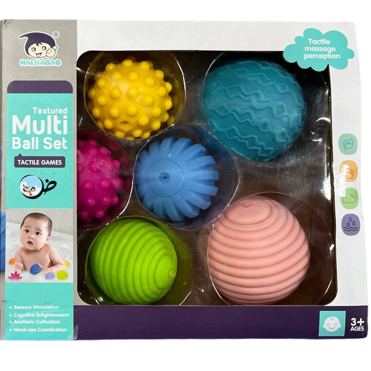 تحتوي المجموعة على 6 كرات صغيرة ولينة، بأشكال حسية متنوعة لجذب إنتباه الأطفال.